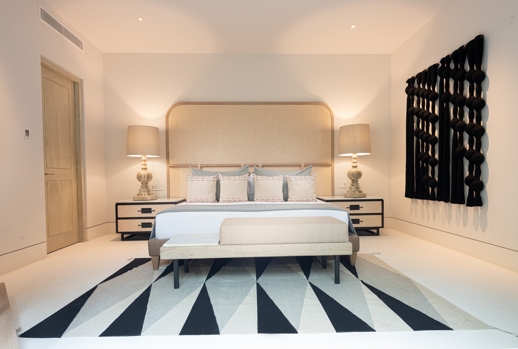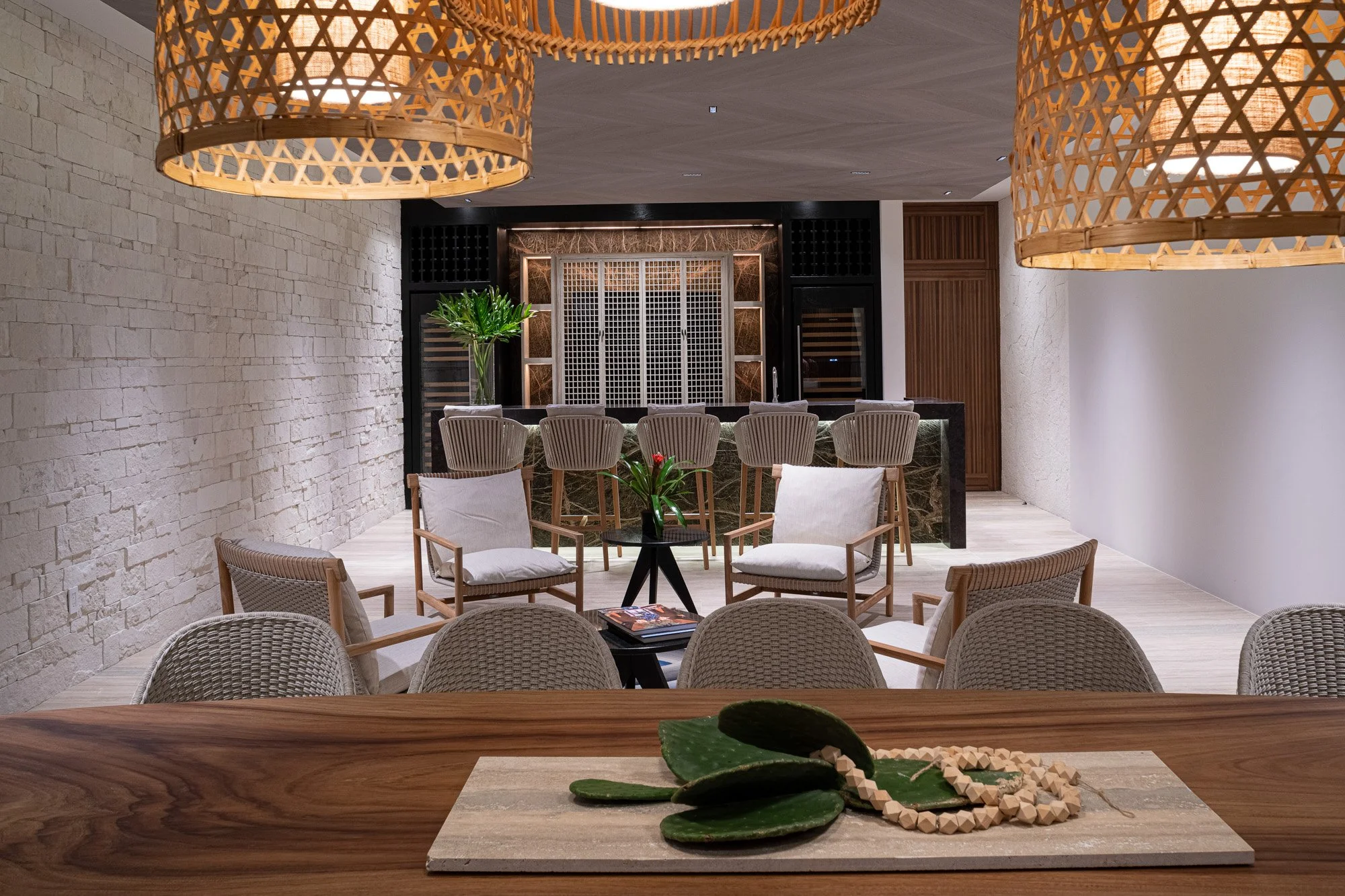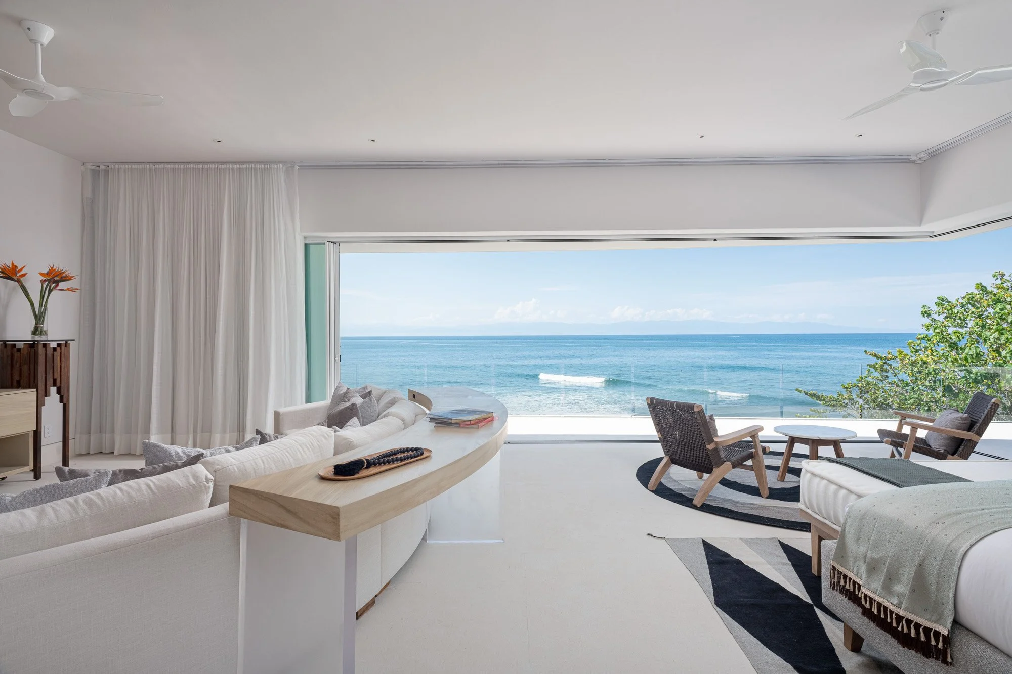 Casa Akai's bold design is complemented by soft, inviting details, creating a sense of tranquility. Massive sliding glass walls blend the exterior with the interior, infusing the home with sea spray and natural light. Sink into plush couches, unwind on warm chaise lounges, and find serenity on each terrace. Neutral interior tones calm, while unique ornamentation and Old World-inspired furnishings add a playful yet modern flair. Casa Akai, curated by Joaquin Homs, promises an extraordinary villa experience where every day feels like paradise.