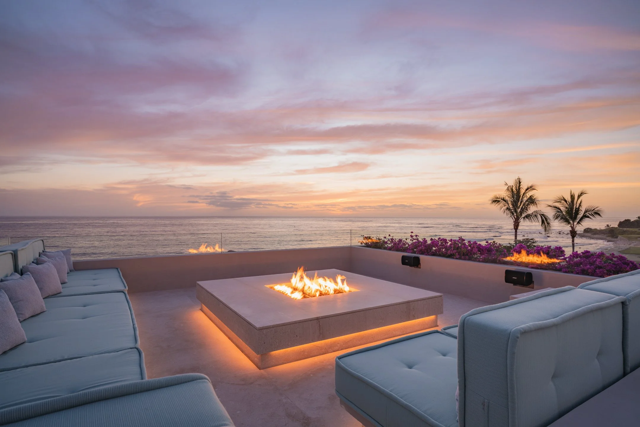 Designed for both relaxation and entertainment, the villa boasts an array of world-class amenities. A stunning palapa serves as the heart of outdoor gatherings, featuring dining for 20, a bar, and plush lounge seating by the shimmering infinity pool. Indulge in leisurely afternoons at the private two-lane bowling alley or unwind in the state-of-the-art home theater, where plush seating enhances the cinematic experience. A dedicated spa sanctuary invites rejuvenation, while the fully equipped fitness center ensures wellness remains a priority. Whether savoring a chef’s gourmet creations, perfecting your strike, or simply soaking in the ocean breeze, Casa de Elementos delivers an extraordinary Punta Mita retreat.