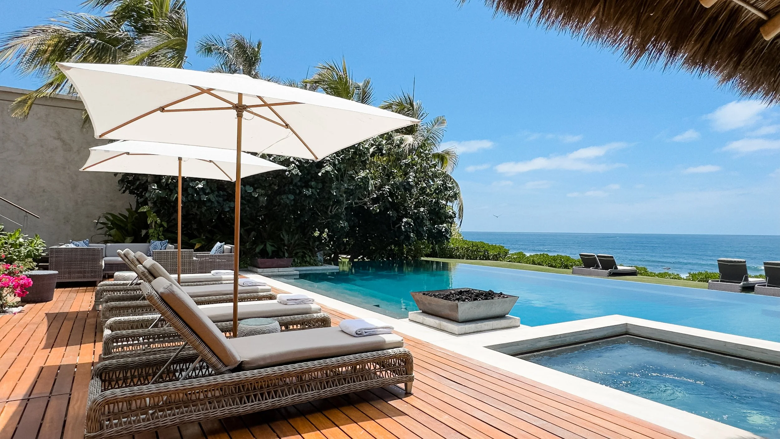 Casa Entre Rocas, located in La Punta Estates, thoughtfully designs every space to evoke pleasure and beauty. The interplay of light and ventilation creates a soul-soothing ambiance. This is where you genuinely connect with the extraordinary Mexican coast's charm. Indulge in oceanfront living, where each moment celebrates tranquility and splendor. Whether you seek serenity in lush surroundings or bask in the sun-kissed ocean beauty, Casa Entre Rocas redefines luxury.