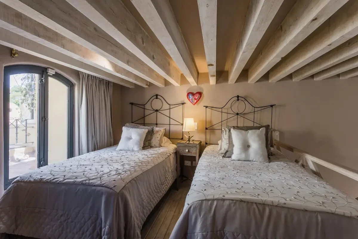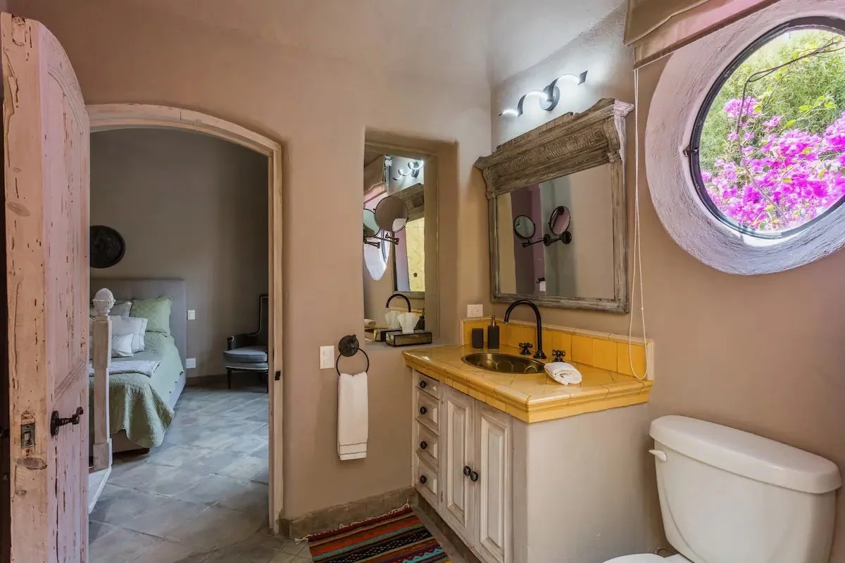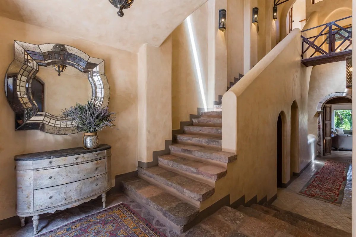 Each bedroom combines luxury and comfort, with a gas fireplace, air conditioning, and heating for all-season comfort. The master suite on the second level enjoys a private balcony with canyon views, and a spacious guest suite offers two queen beds and two twin beds, along with ample storage. The home is enhanced with high-end furnishings from Dupuis and Namuh, ensuring every corner of Casa Libélula radiates warmth and sophistication. Experience San Miguel’s enchanting lifestyle in this perfect blend of style and serenity.