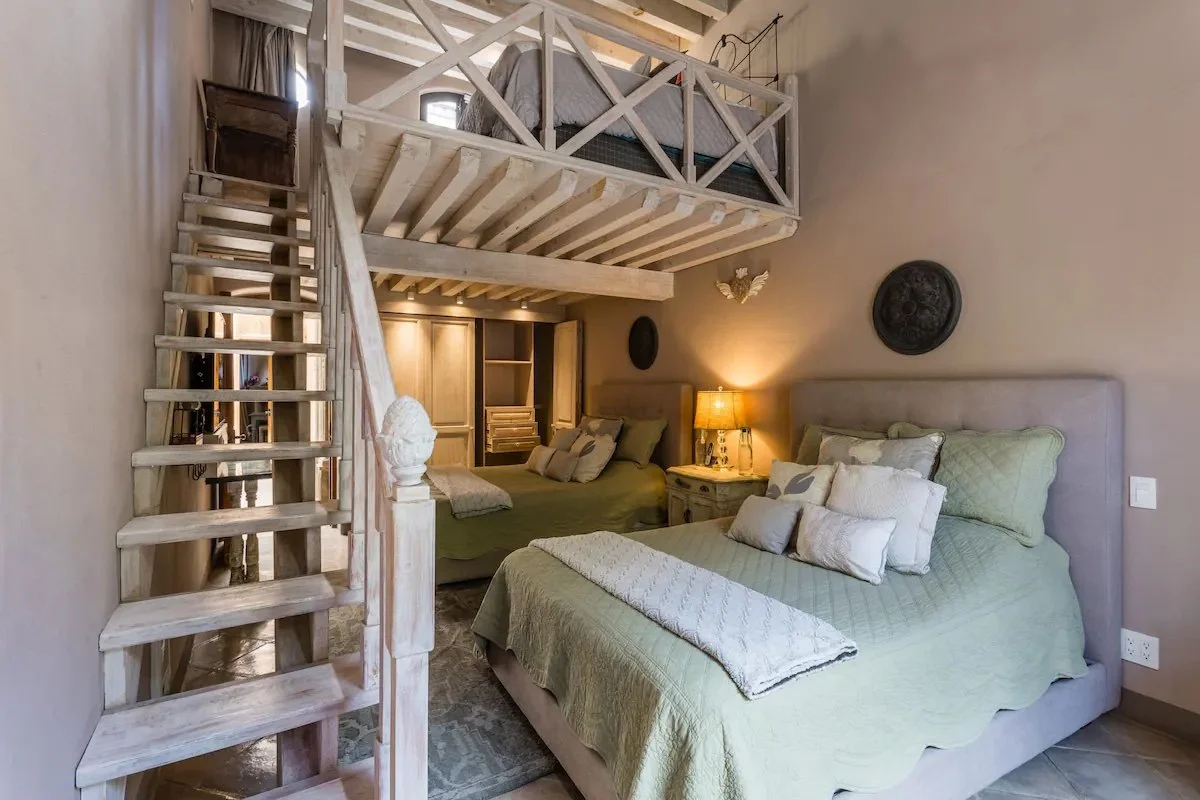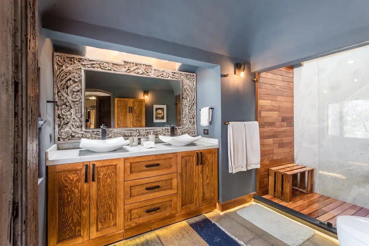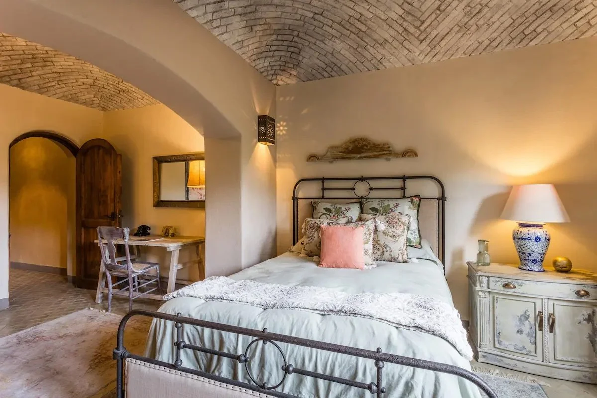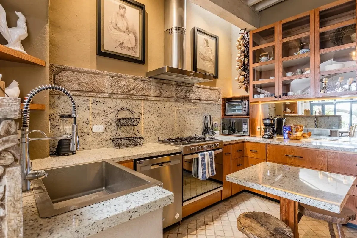 Each bedroom combines luxury and comfort, with a gas fireplace, air conditioning, and heating for all-season comfort. The master suite on the second level enjoys a private balcony with canyon views, and a spacious guest suite offers two queen beds and two twin beds, along with ample storage. The home is enhanced with high-end furnishings from Dupuis and Namuh, ensuring every corner of Casa Libélula radiates warmth and sophistication. Experience San Miguel’s enchanting lifestyle in this perfect blend of style and serenity.